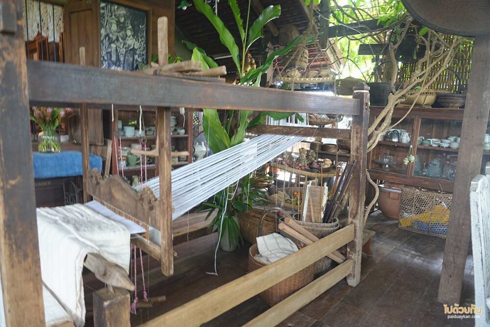 ส่วนชั้นบนของบ้าน เต็มไปด้วยของใช้เกี่ยวกับการทอผ้าเก่าแก่ เครื่องมือโบราณ ตลอดจนผ้าทอพื้นเมืองสีสวยที่ถูกแขวนโชว์อย่างภูมิใจ เหมือนเดินอยู่ในพิพิธภัณฑ์งานหัตถกรรมขนาดย่อมเลยค่ะ