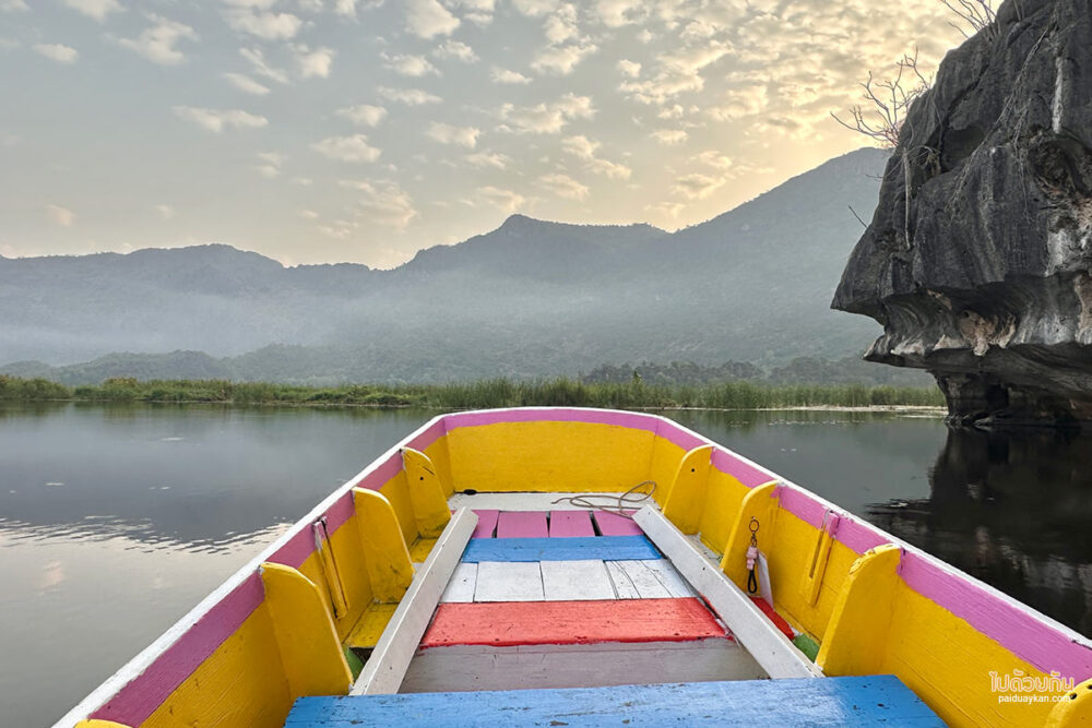 เราเลือกมาที่นี่ในช่วงเช้าค่ะ เพราะชอบแสงเช้า เพราเราชอบแสง soft ค่ะ ถ่ายรูปตรงถ้ำเขาจูบกันจะไม่ย้อนแสงมากเหมือนตอนเย็น และอยากเจอหมอกบางๆ เรือของที่นี่ทาสีสันสดใส ถ่ายรูปออกมาสวย ตัดกับท้องฟ้าและสระน้ำ ระหว่างทางล่องเรือ เราจะได้ชมวิวภูเขาสามร้อยยอด เป็นภูเขาหินปูนที่รูปร่างแปลกตา เคล้ากับแสงอ่อนๆของดวงอาทิตย์ยามเช้า สวยงามมาก มีบัวขึ้นมานิดหน่อยแต่ไม่มากค่ะ